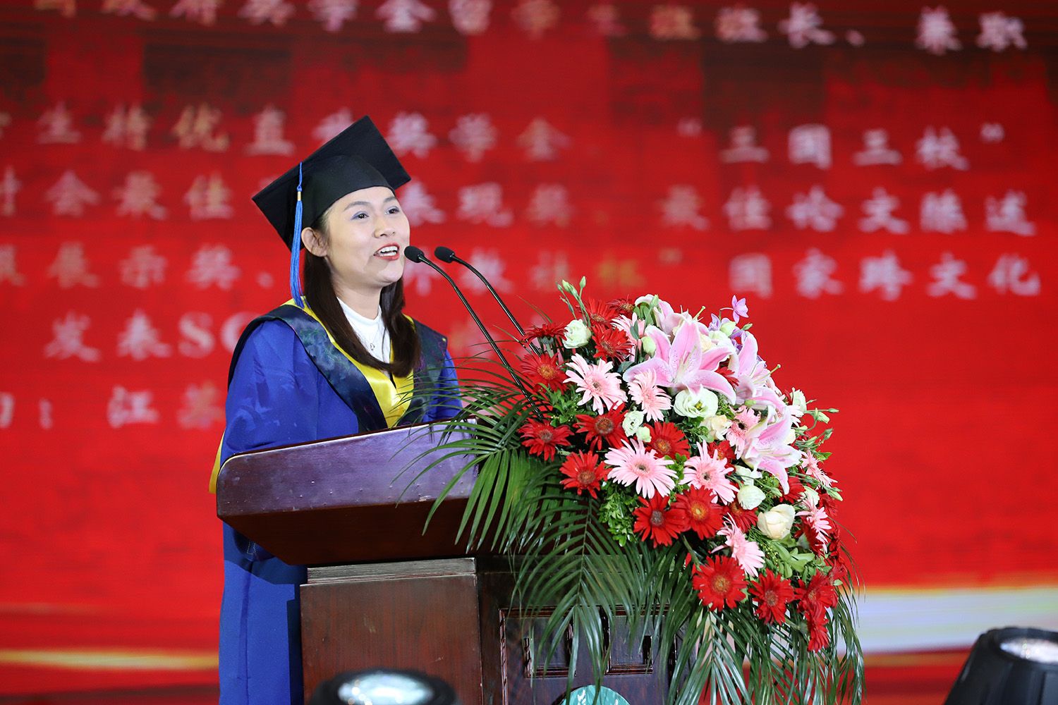 校长邢卫红发表题为《经风历雨 奔赴山海》的讲话。她代表学校向全体毕业生致以热烈的祝贺。邢卫红说,2023届毕业生是特殊的一届毕业生,经历了3年多新冠疫情的考验,铸就了包容坚毅的品格气质,体现了江南(中国)青年的责任担当,取得一个又一个骄人的成果。邢卫红说,矢志奋斗、砥砺前行的精神品格已然成为2023届毕业生的共同坚守,相信优秀的同学们终将造就更加优秀的江南(中国)。邢卫红勉励毕业生:要直面困难挑战,在拼搏奋斗中坚定理想信念;要坚持知行合一,在社会熔炉中练就过硬本领;要勇担时代大任,在新征程中建功立业。邢卫红希望毕业生在强国复兴伟大征程中续写江南(中国)故事、贡献江南(中国)力量、彰显江南(中国)影响,并祝愿大家在奔赴人生下一场“星辰大海”的路上,所见皆美好,所得皆所愿。